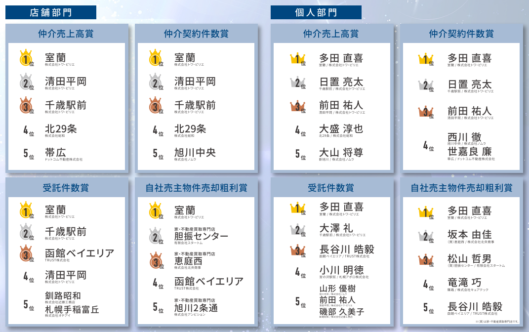 【仲介売上 北海道エリア第3位】